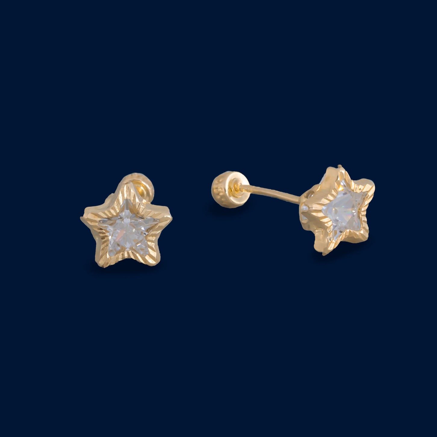 #B10153 - Broquel Bisel Estrella Diamantado De Oro 10k