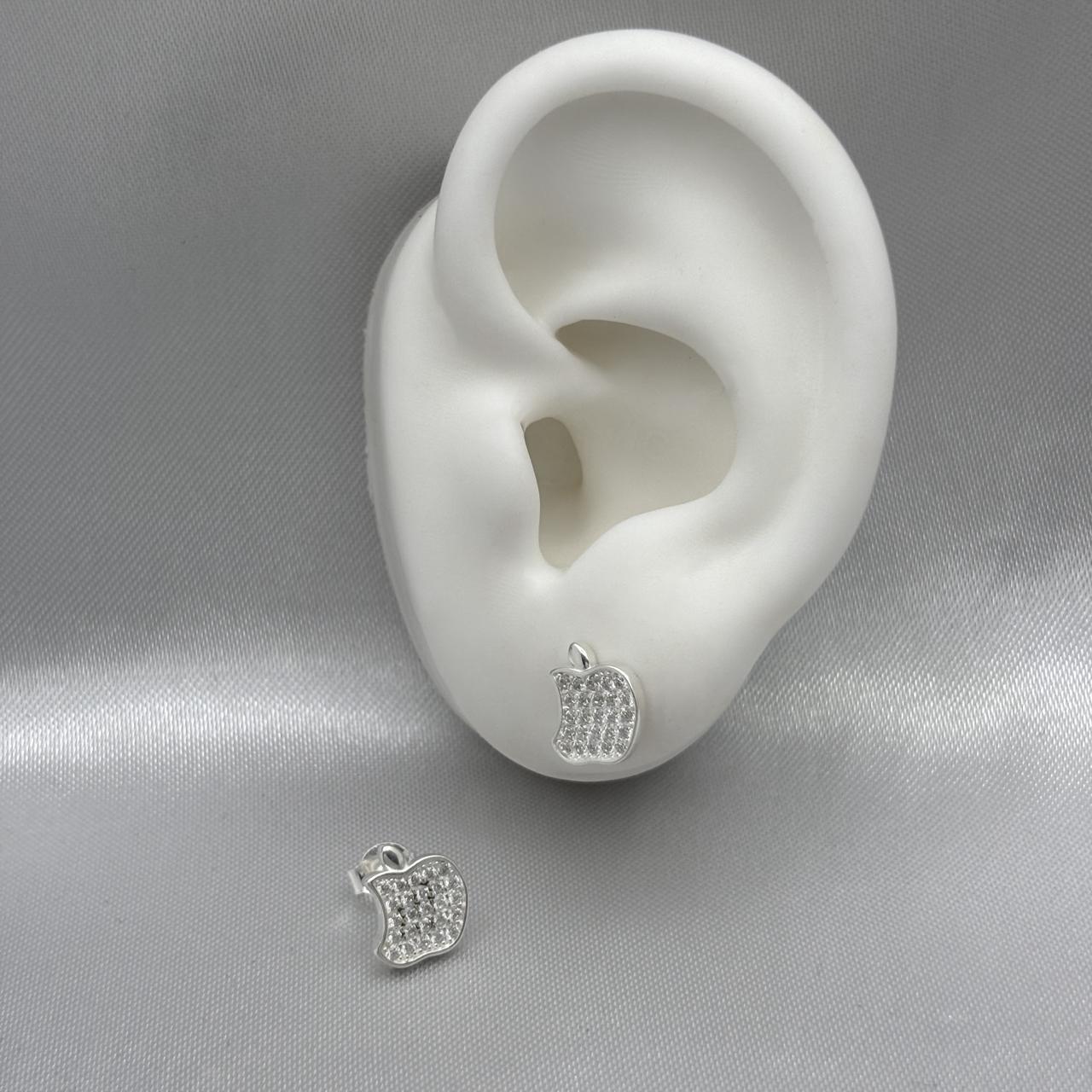 #BR272 - Broquel Manzana Mordida Con Zirconia Plata - LL1.8