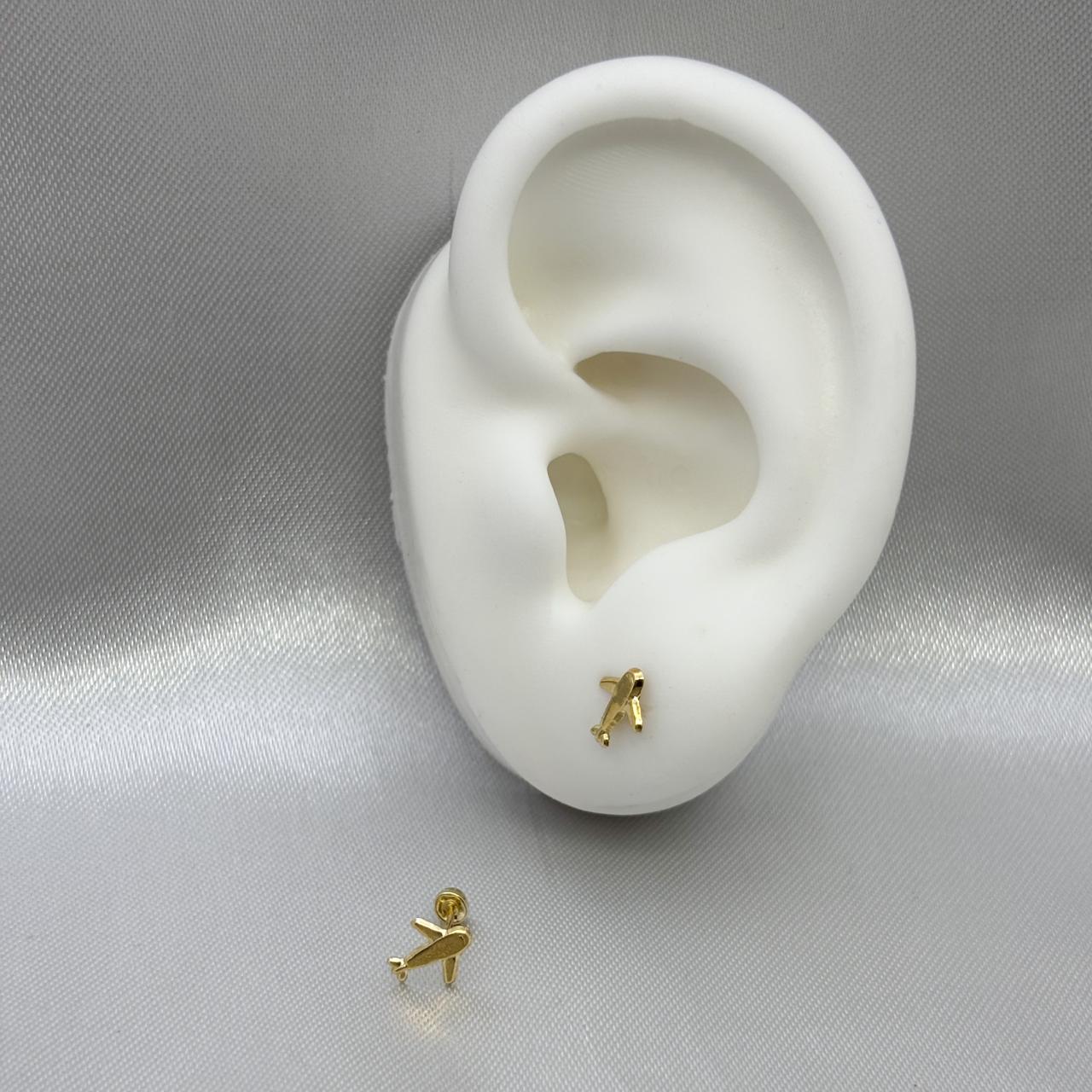 Este broquel de oro 10K destaca por su delicado diseño inspirado en un avión, ideal para quienes buscan un accesorio elegante y con un toque distintivo. Su acabado fino y duradero garantiza un brillo prolongado, combinando estética y calidad en una sola pieza que realza cualquier estilo con sofisticación.