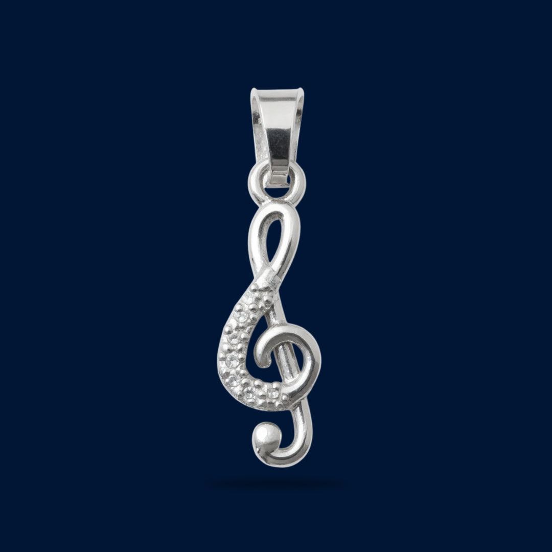 Este dije en plata con diseño de nota musical y detalle en zirconia ofrece un toque elegante y sofisticado para los amantes de la música. Su acabado fino y la calidad de los materiales garantizan durabilidad y un brillo duradero, ideal para complementar cualquier estilo con un símbolo que refleja pasión y personalidad. Perfecto para uso diario o como un regalo significativo.