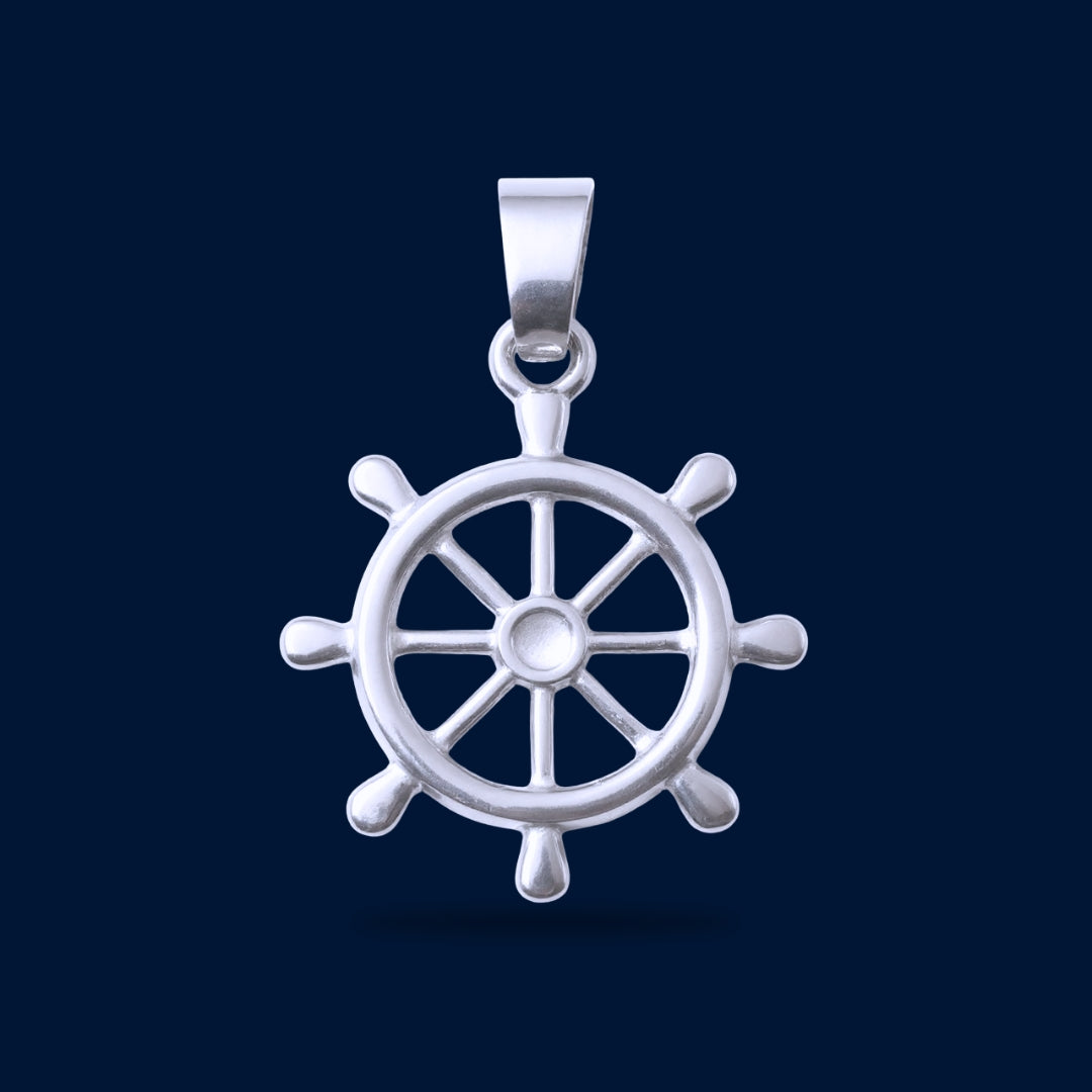 Este dije en forma de timón, elaborado en plata, combina elegancia y simbolismo náutico. Su diseño detallado refleja precisión y estilo, ideal para quienes buscan un accesorio sofisticado que represente liderazgo y dirección. Perfecto para complementar cualquier atuendo con un toque distintivo y profesional.