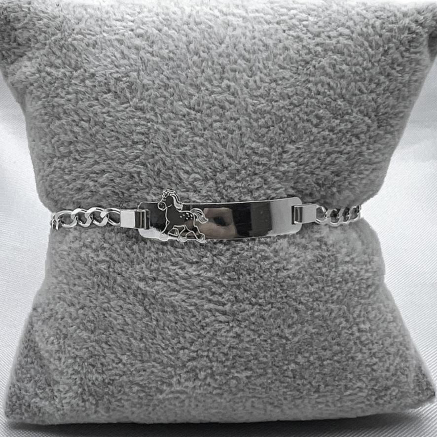 Hazlos felices con esta esclava de plata para niños ¡que les encantará tener en su colección! Con un grabado de caballo, es perfecta para los pequeños amantes de los equinos. ¡Un regalo único y divertido!