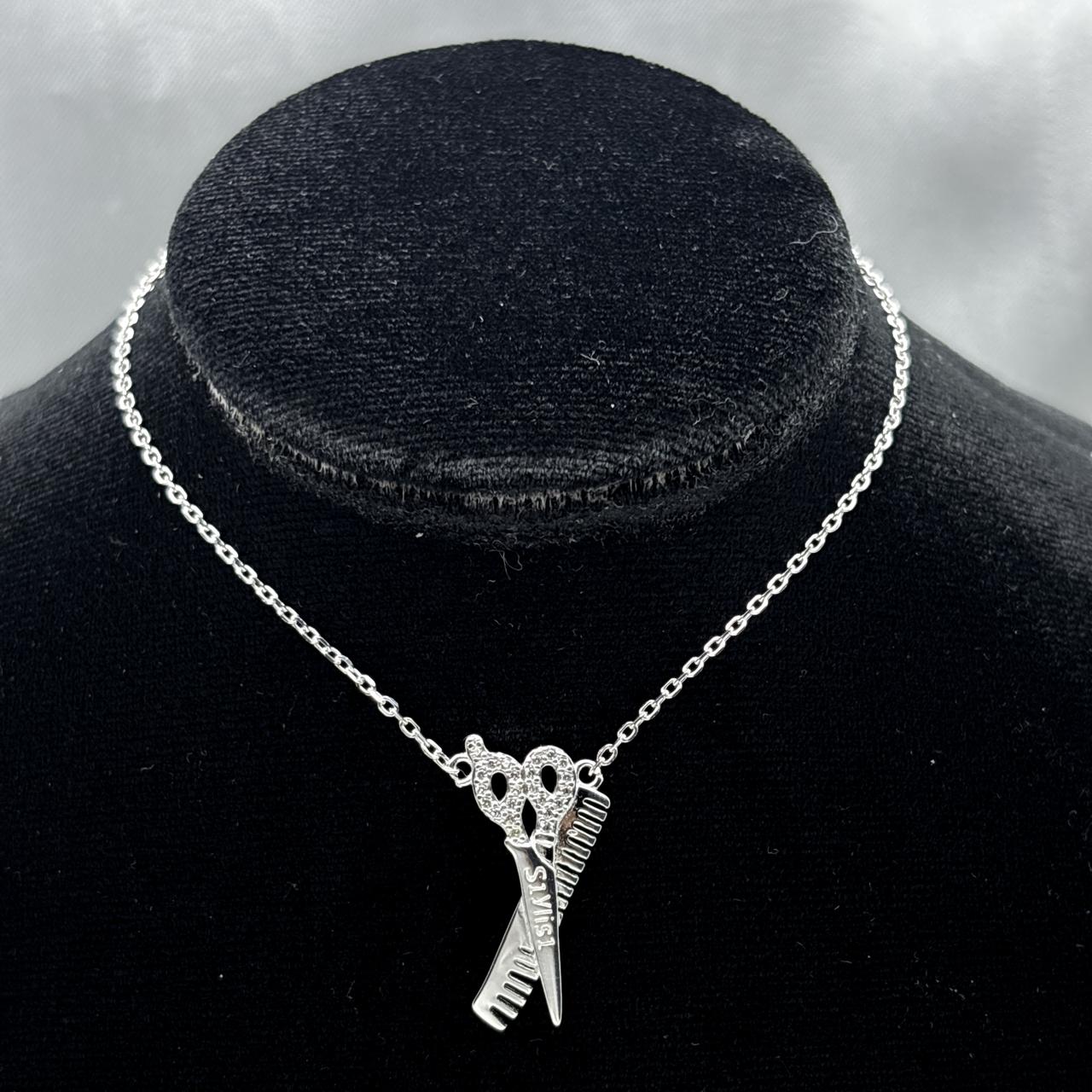 Disfruta de la elegancia y exclusividad con nuestra Gargantilla Estilista, diseñada con un dije en forma de peine y tijeras adornado con piedras de zirconia. Hecho de plata 925, este accesorio es perfecto para estilistas que buscan un toque de estilo y lujo en su atuendo.