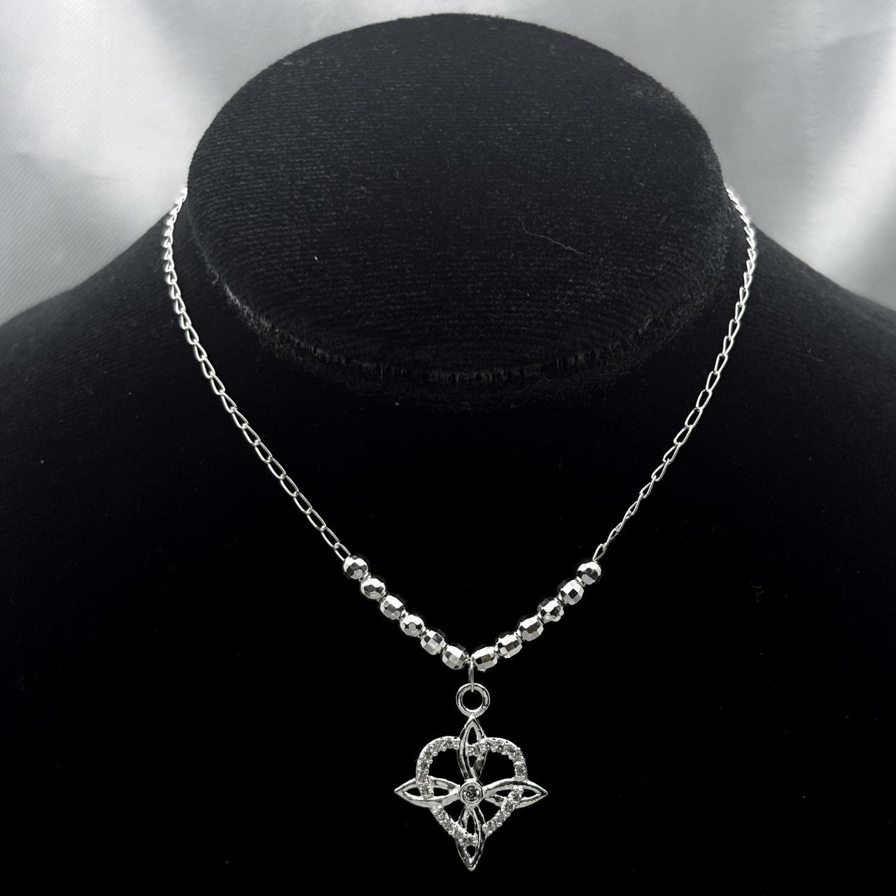 #G261 - Gargantilla Corazón Nudo De Bruja Piedra Zirconia PLata - LL2.4