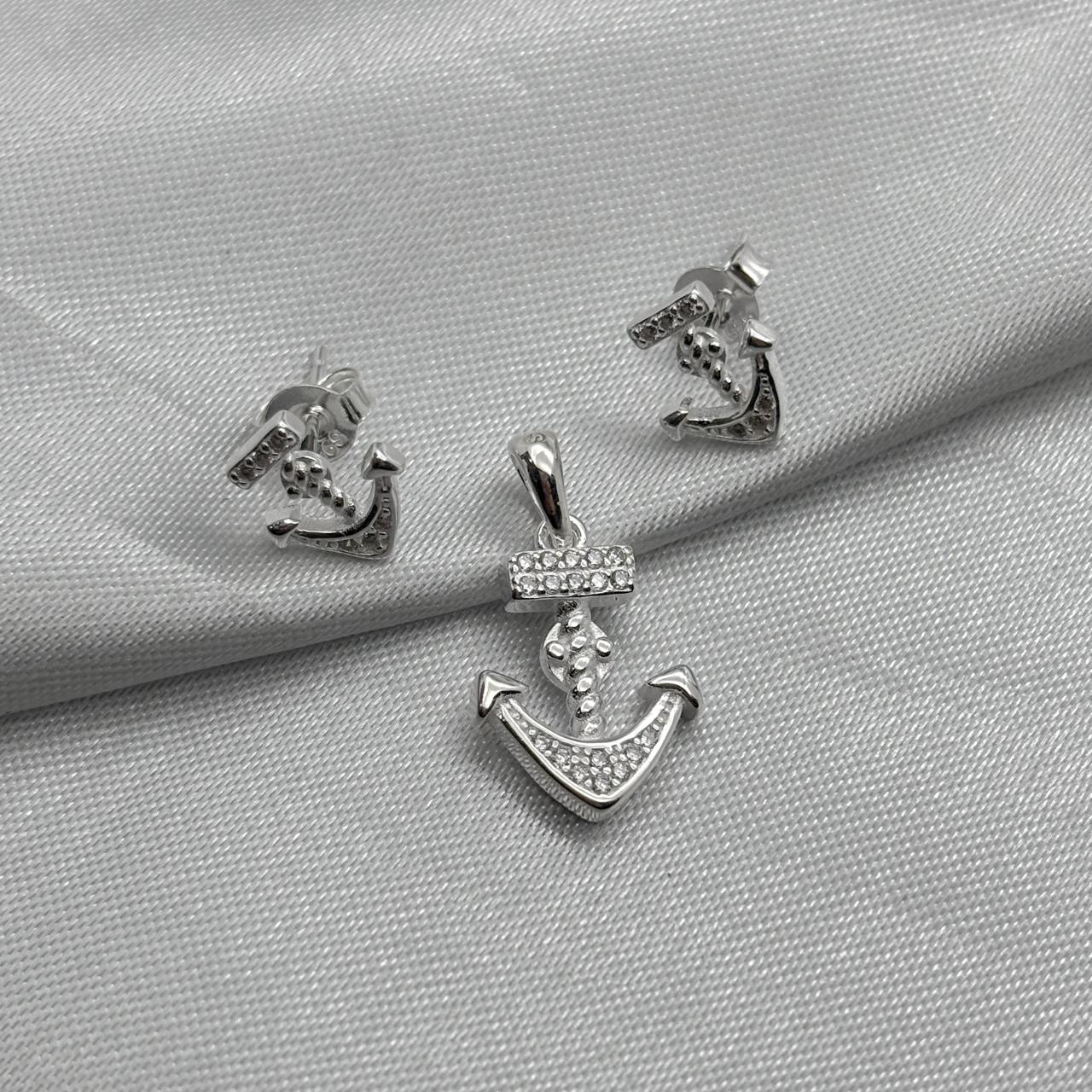#J146 - Juego Ancla Con Piedra Zirconia Plata - IP2.6