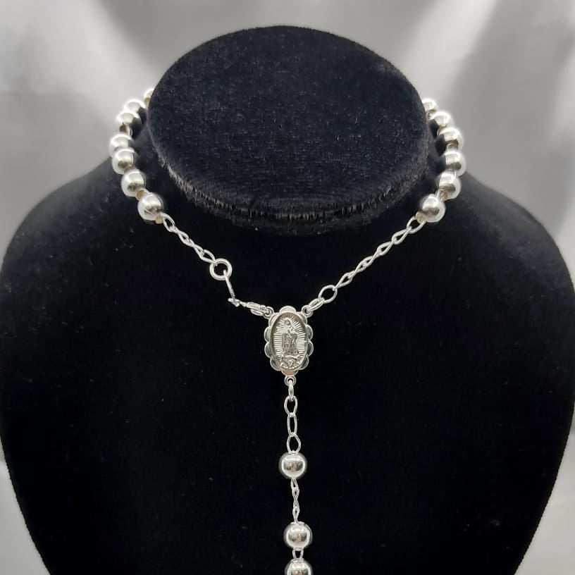 #MR107 - Rosario Virgen De Guadalupe Y Cruz Liso Plata - 5 mm - B05/19.8