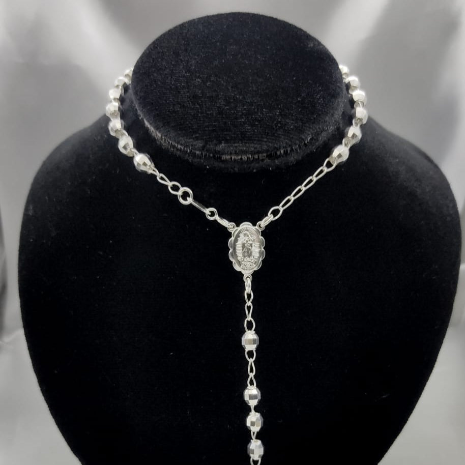 #MR122 - Rosario Virgen De Guadalupe Y Cristo Diamantada Plata - 6 mm - B07/25.1