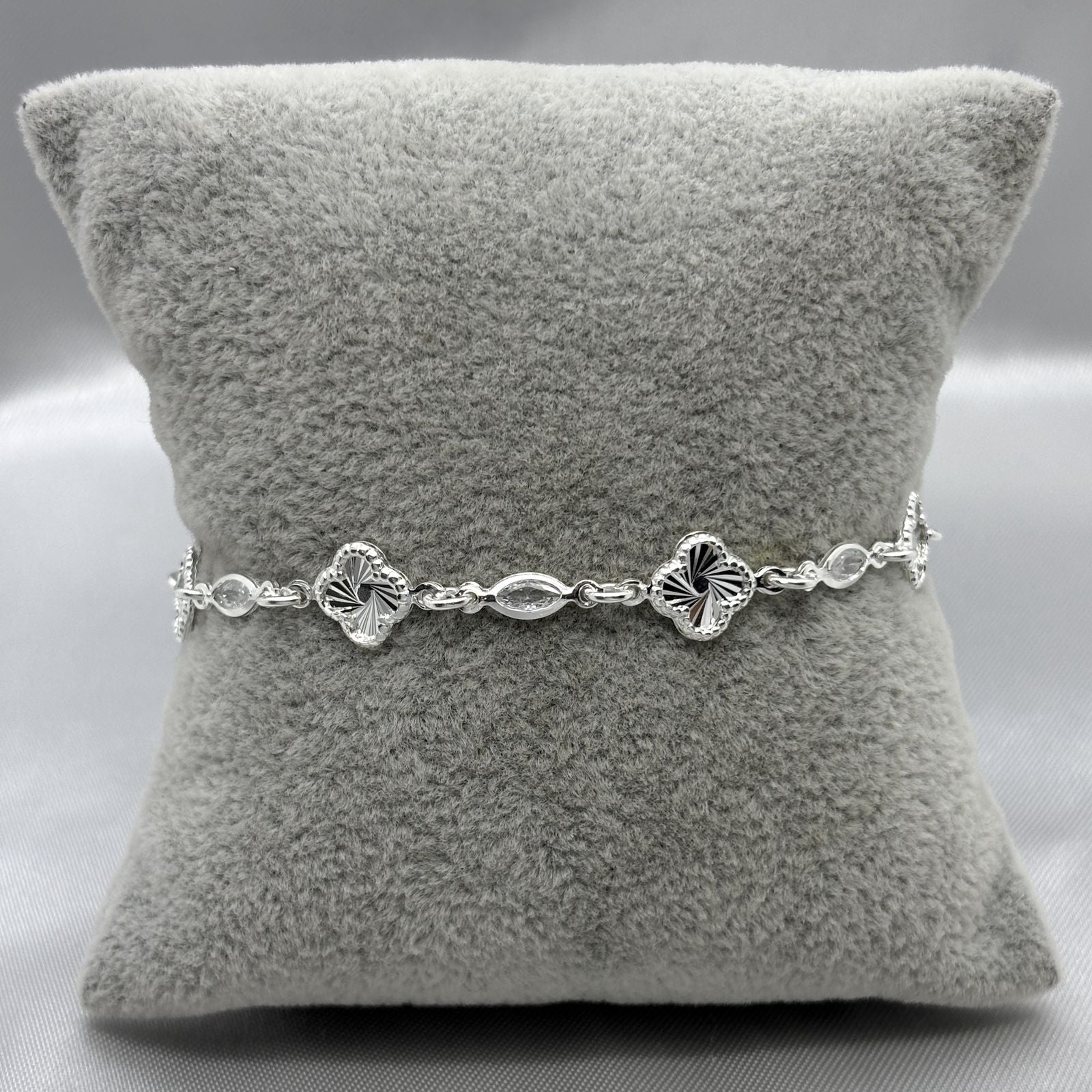 #PA487 - Pulsera Diamantada De Trébol Tipo Van Cleef Con Zirconia Plata - A13/5.0